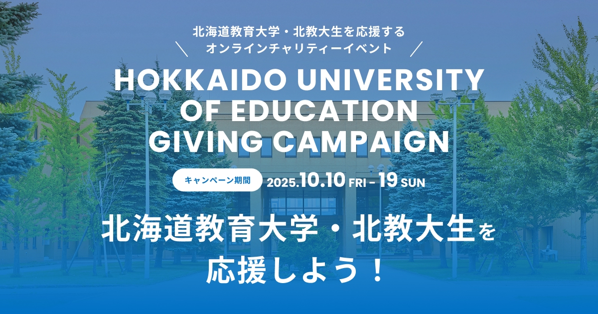 参加団体 | 北海道教育大学 あなたの応援が北海道教育大学の参加団体に寄付金として届きます。2025年10月10日から2025年10月19日まで